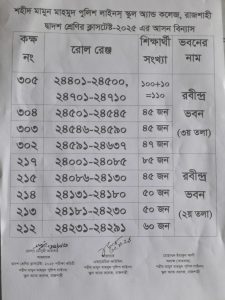 দ্বাদশ শ্রেণির ক্লাস টেস্ট পরীক্ষার সময় সূচী ও আসন বিন্যাস।